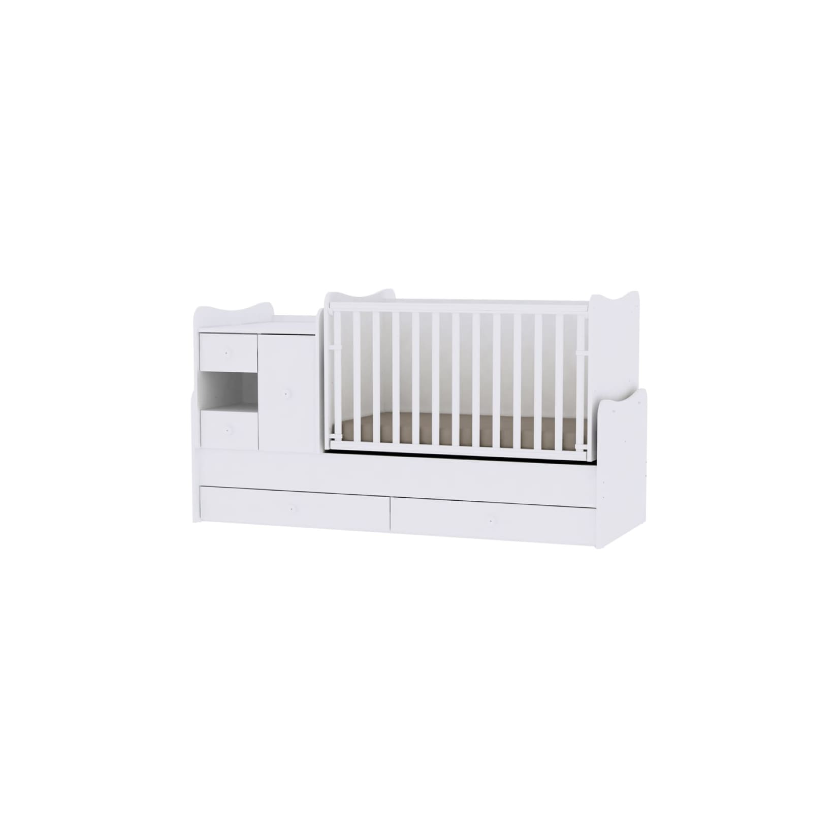 Lorelli Babybett, Jugendbett 3 in 1 Mini Max umbaubar, für 2 Kinder gleichzeitig weiß