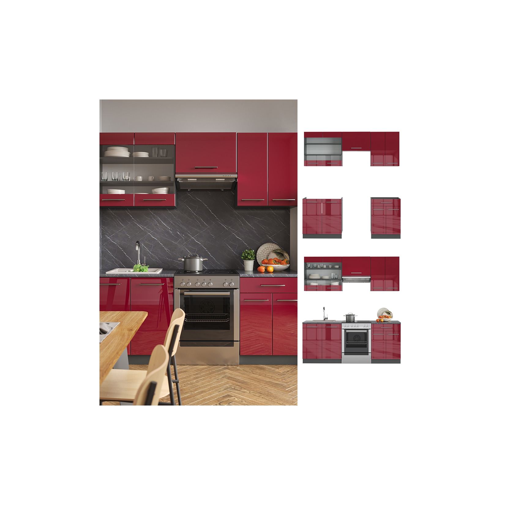 Vicco Küchenzeile Küchenblock Einbauküche 200cm Fame-Line Bordeaux Hochglanz